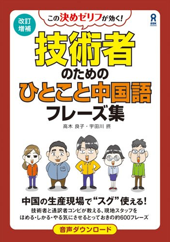 など、いくつかのコースを用意させていただいております。使用するテキストは上記の『この決めゼリフが効く!技術者のためのひとこと中国語フレーズ集・増補版』で、本書自体が通訳と技術者の共著となっていますので、現場で使えるフレーズという語学面だけでなく、現場での仕事でのお困りシーン、うまくいくコツまでを網羅しています。
